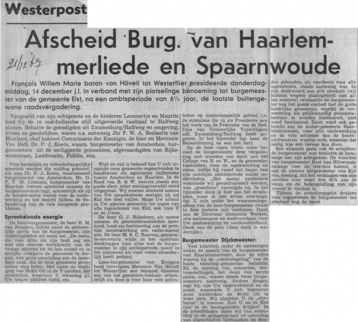 Afscheid burgemeester Haarlemmerliede en Spaarnwoude Van Hovell tot Westerflier