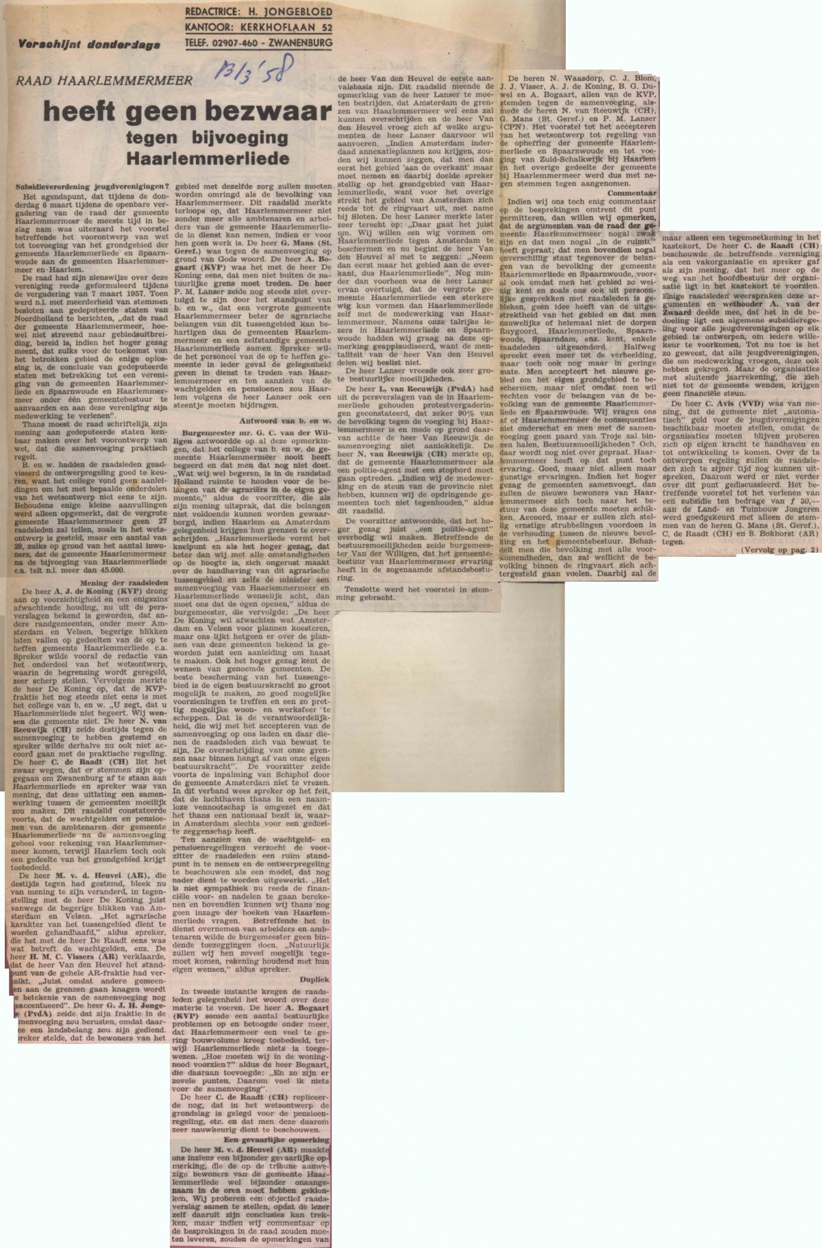 Annexatie Raad Haarlemmermeer geen bezwaar tegen samenvoeging