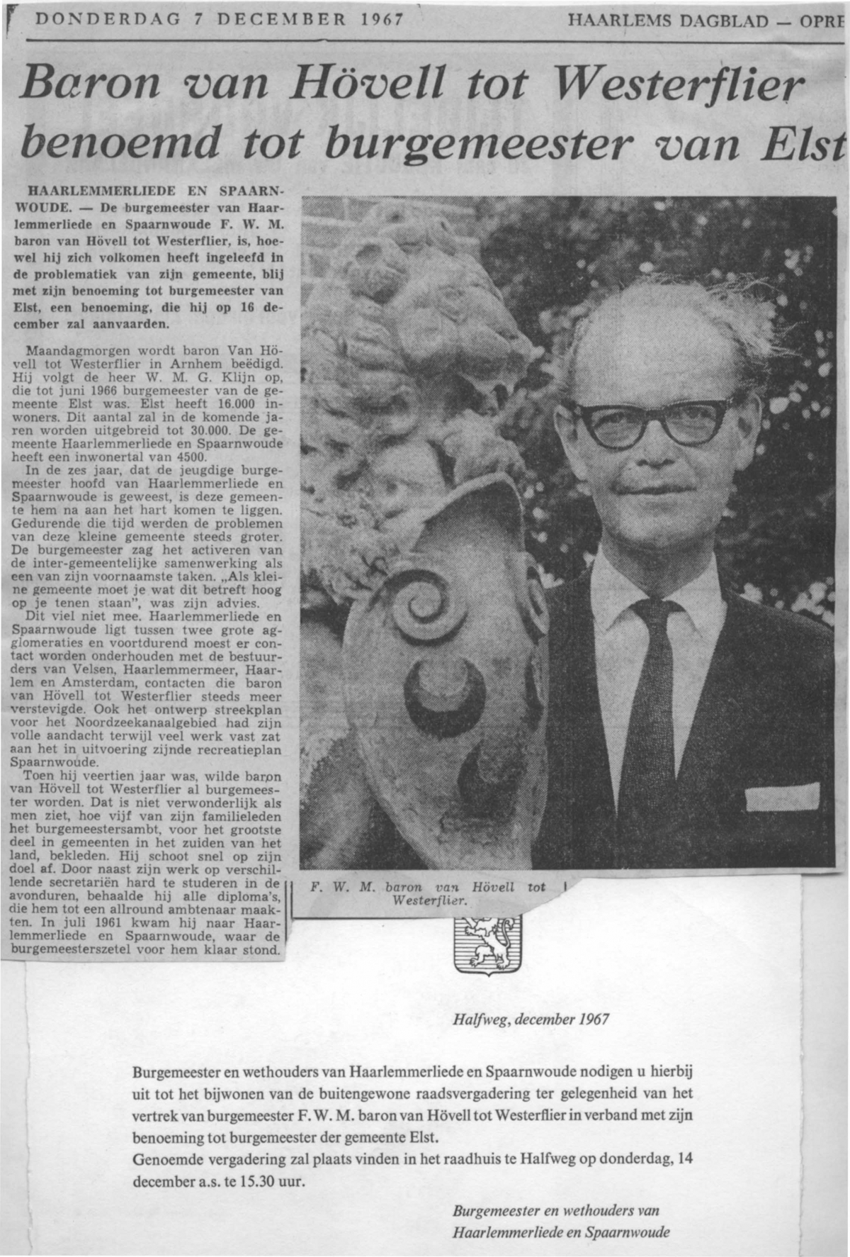 Baron van Hovell tot Westerflier burgemeester Elst