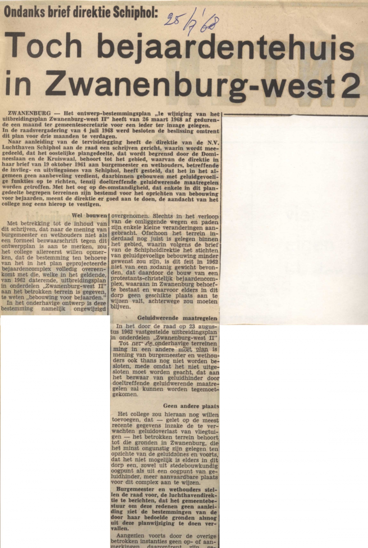 Bejaardenhuis Zwanenburg ondanks brief Schiphol