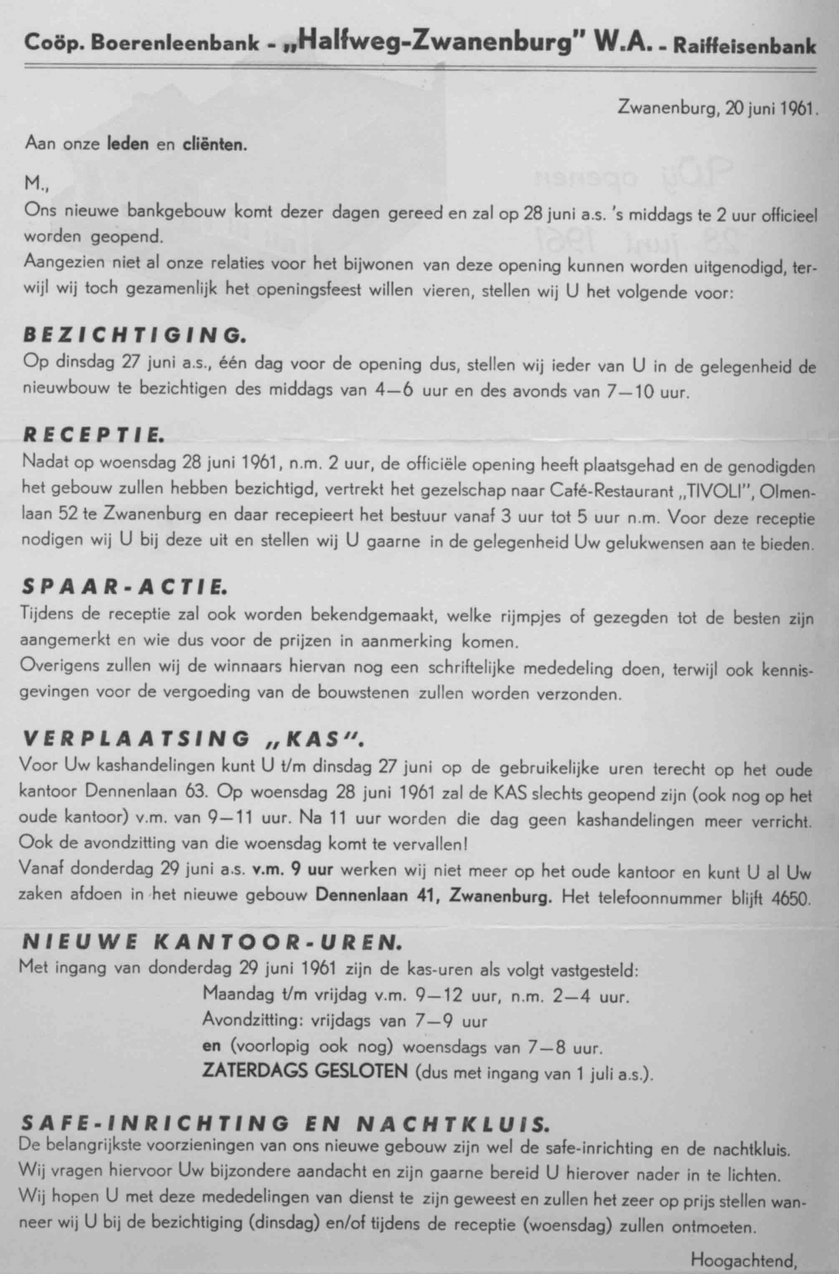 Brief Rabobank nieuw bankgebouw