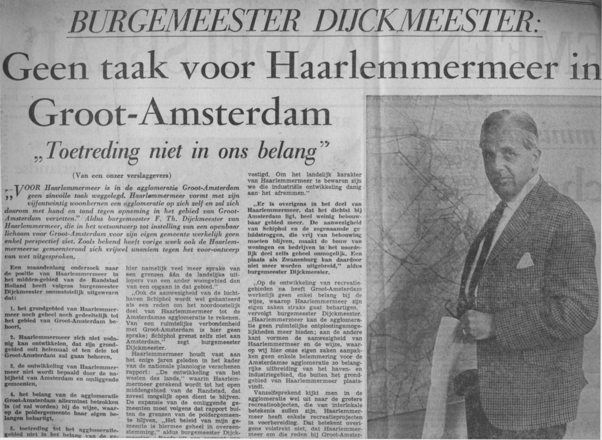 Burg. Dijckmeester wil H'meer niet bij Groot-Amsterdam, 1966