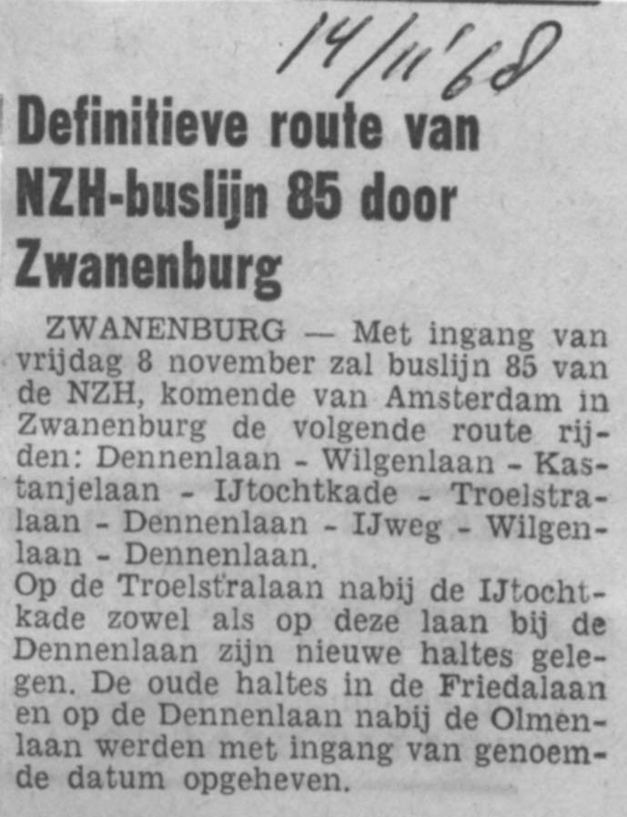Definitieve route NZH-buslijn 85 Zwanenburg