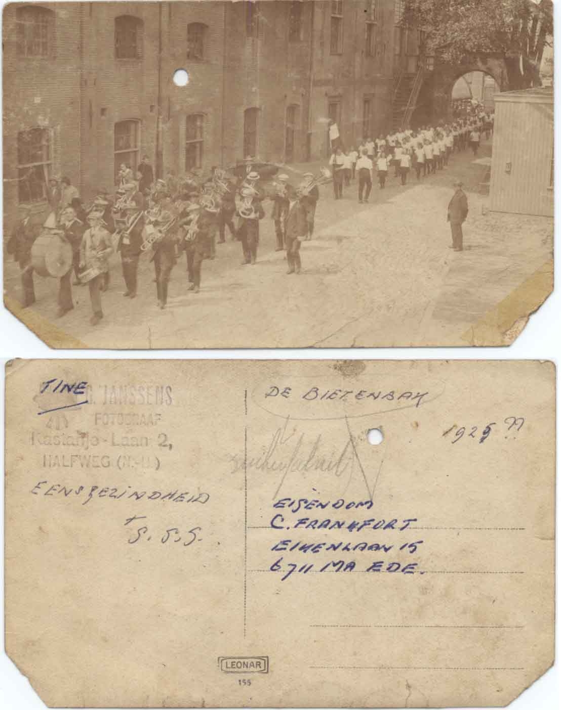 Eensgezindheid, schoolparade bij Suikerfabriek zijkant ingang poort 1925