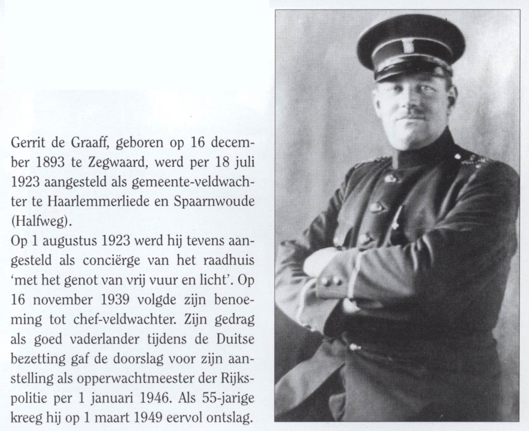 Gerrit de Graaff veldwachter Halfweg tot 1946 gepromoveerd tot