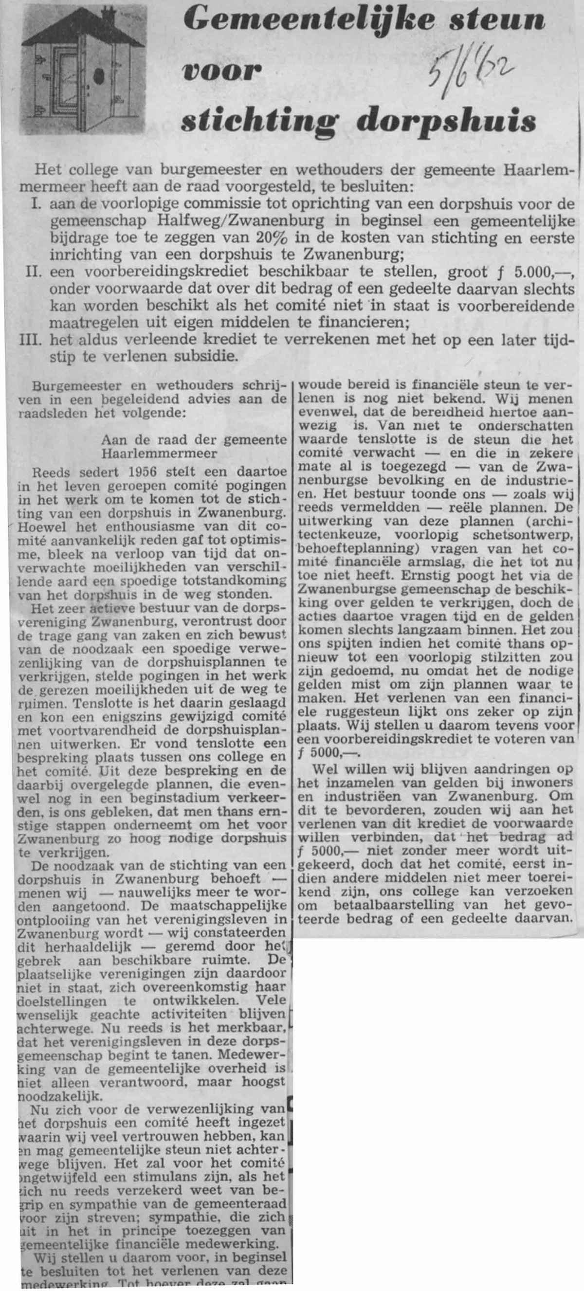Gmeentelijke steun voor stichting dorpshuis