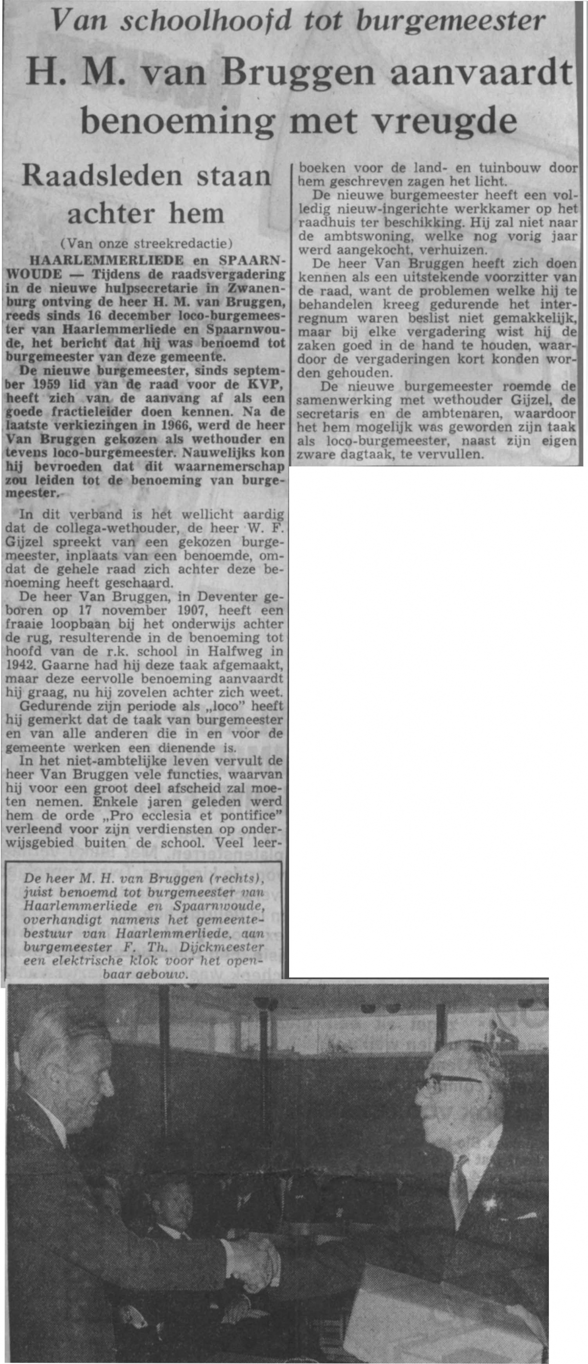 H M van Bruggen aanvaardt benoeming tot burgemeester Haarlemmerliede en Spaarnwoude