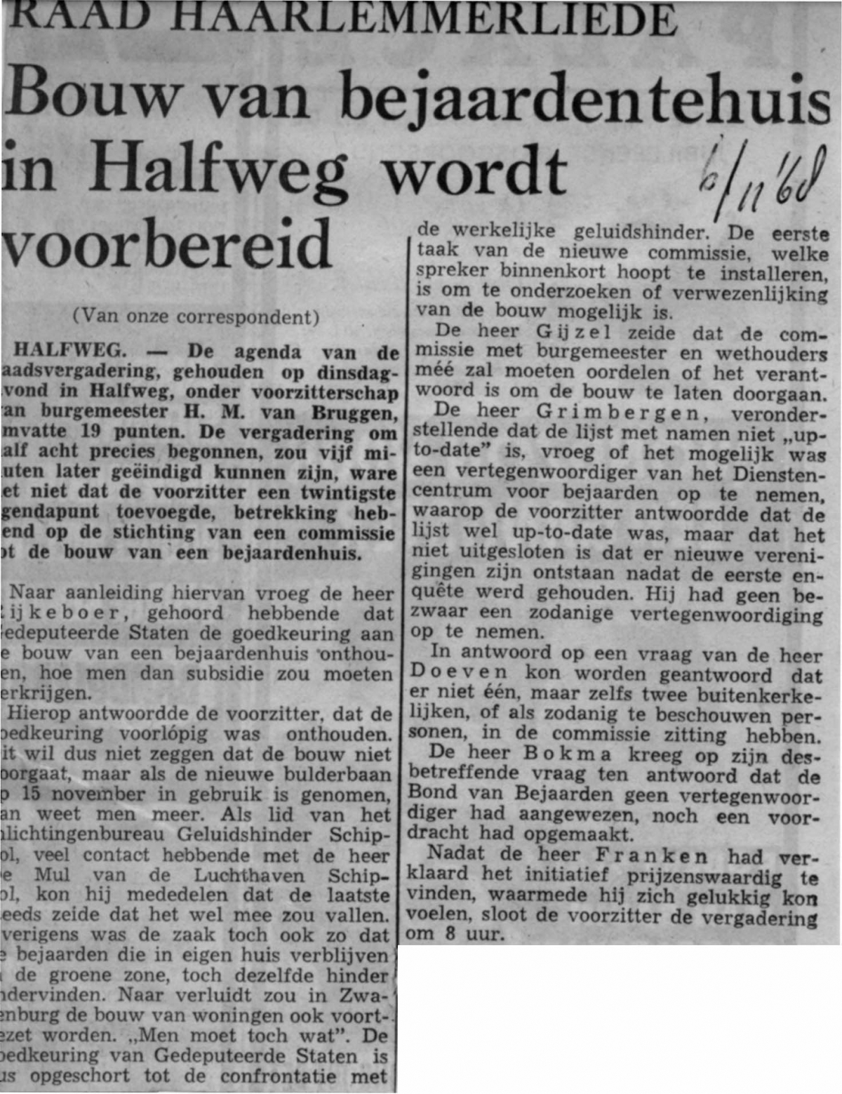 Haarlemmerliede en spaarnwoude voorbereiding bejaardenhuis Halfweg