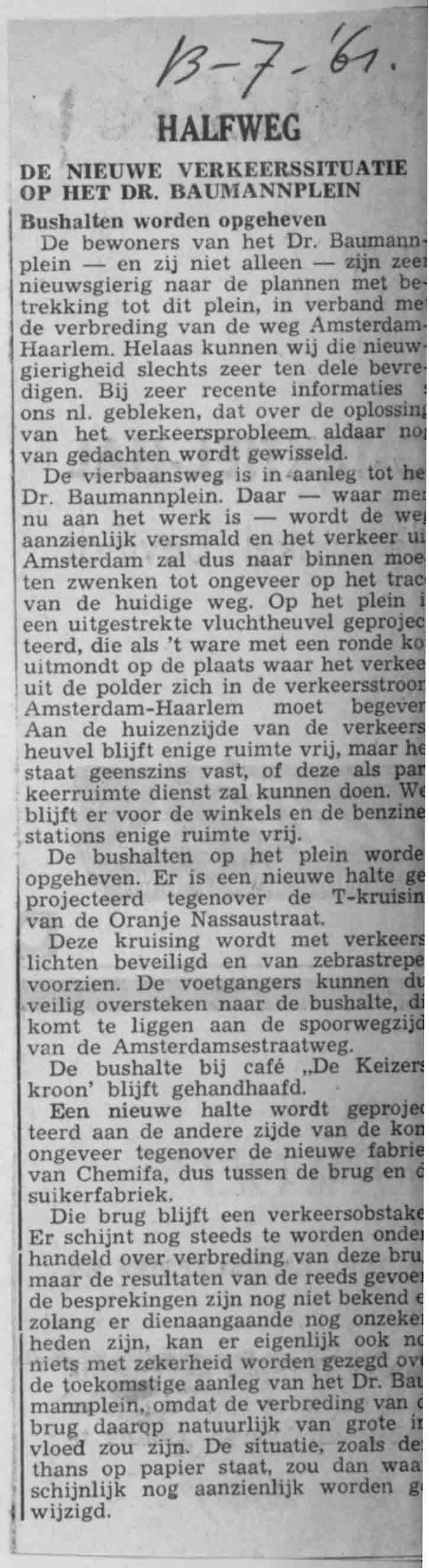 Halfweg Nieuwe verkeerssituatie Baumannplein