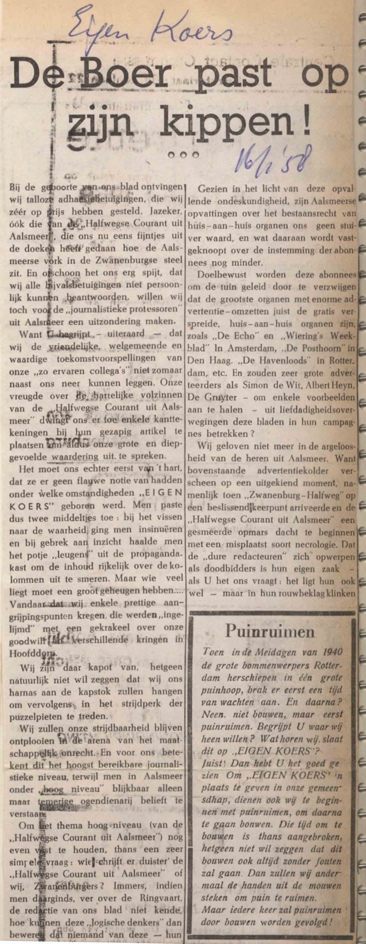 Krantenoorlog De Boer past op zijn kippen
