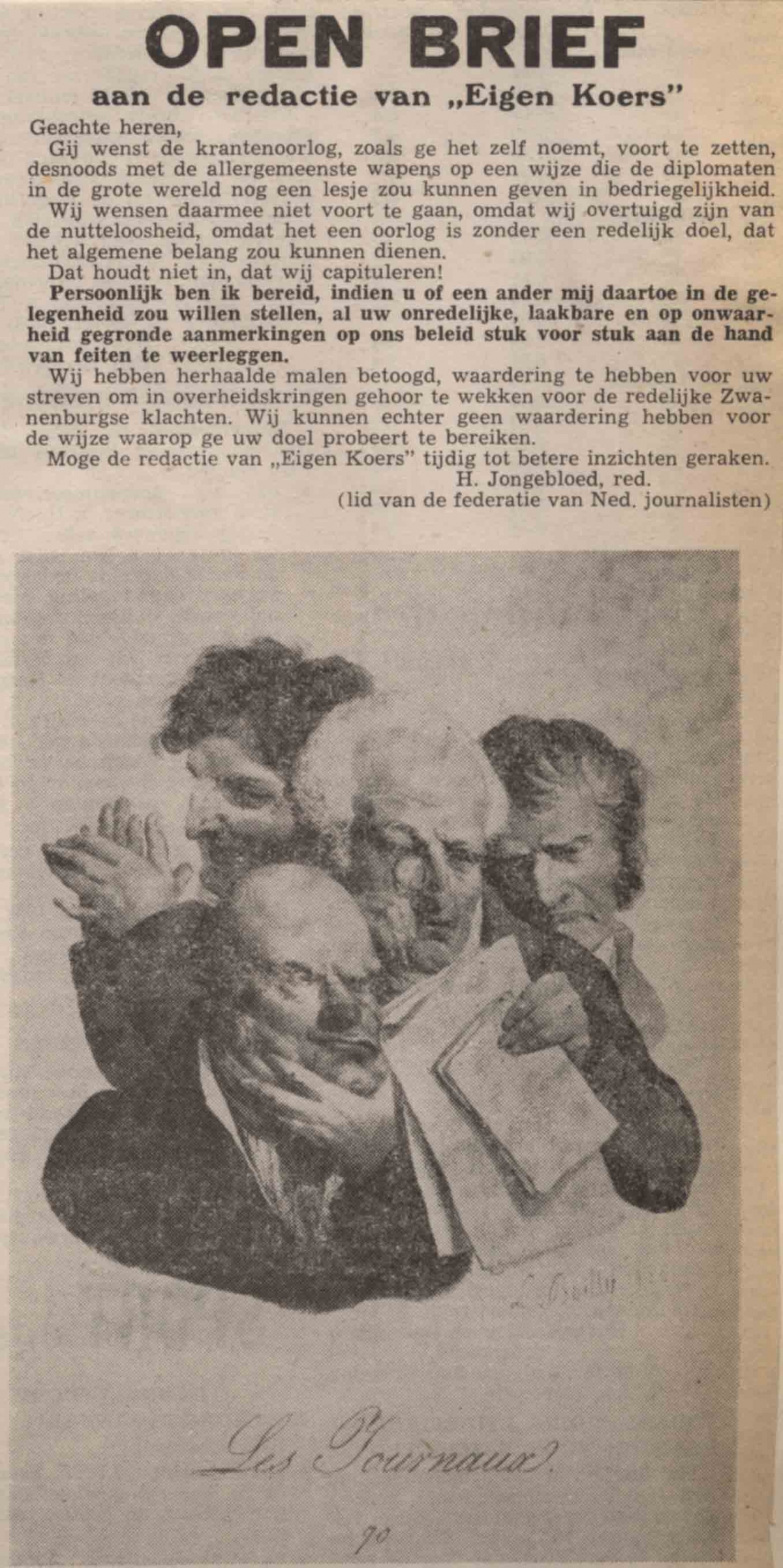 Krantenoorlog Open brief aan redactie Eigen Koers