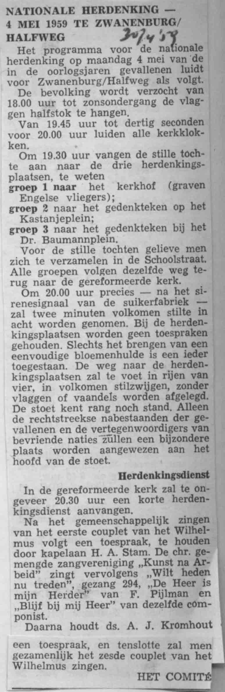 Nationale dodenherdenking Zwanenburg en Halfweg