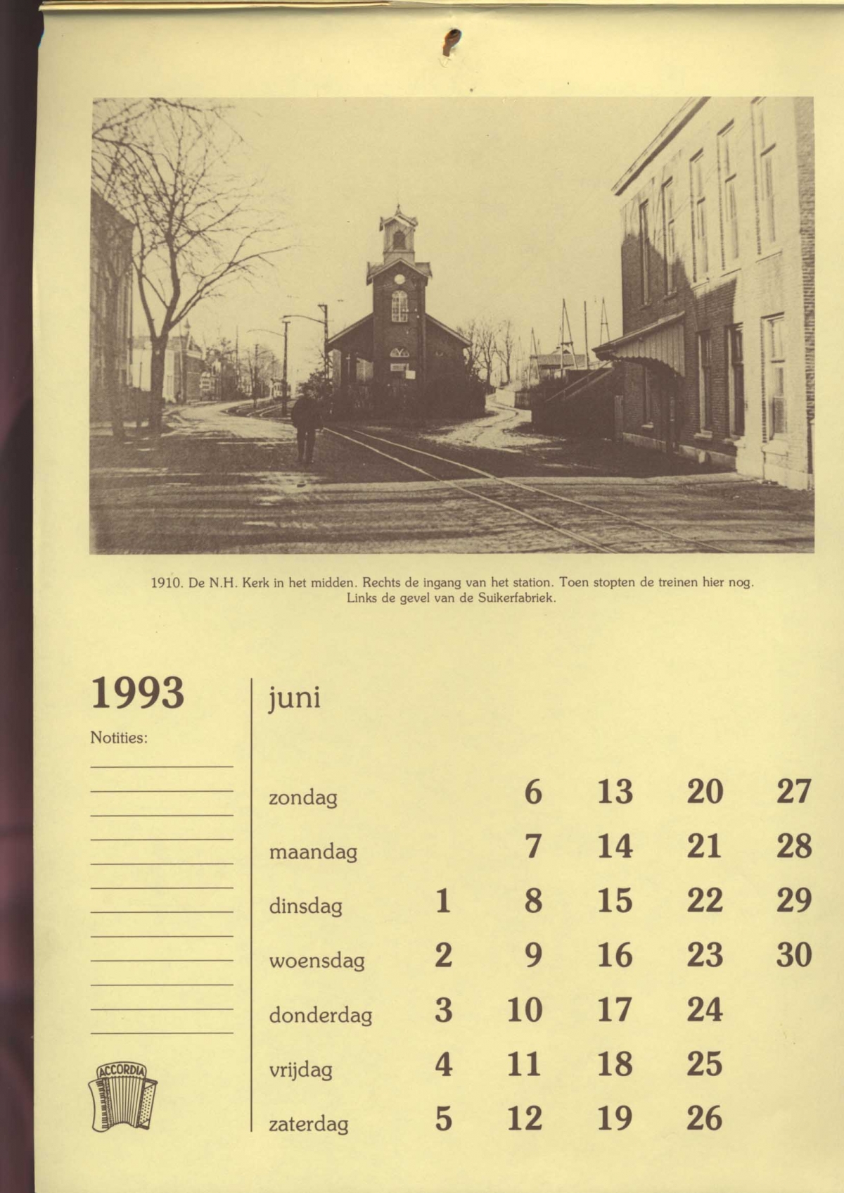 Ned. Hervormde kerk, stationsplein. Rechts het treinstation (1910)