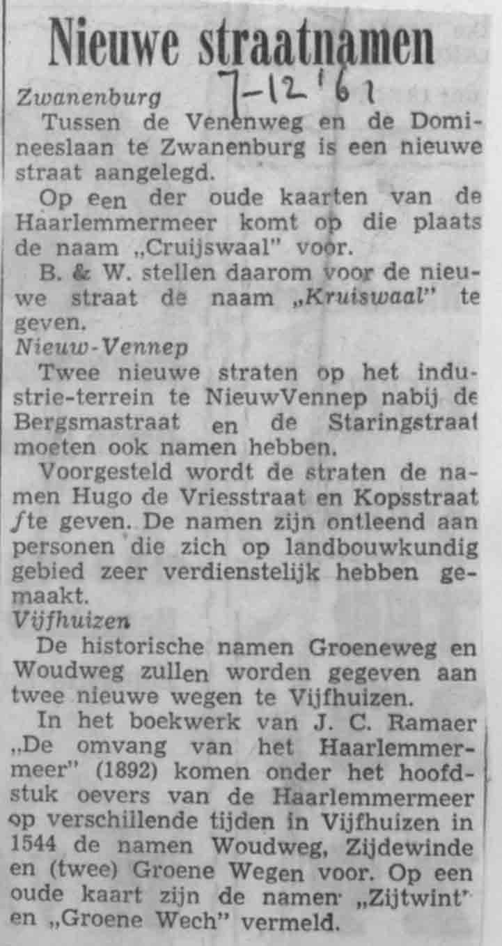 Nieuwe straatnamen Zwanenburg