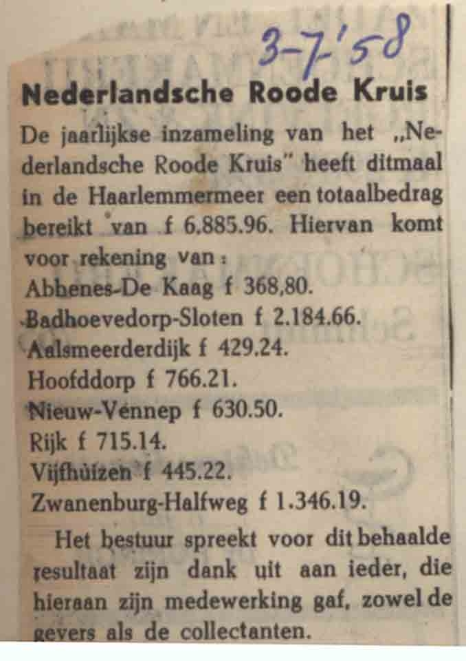Opbrengst Rode Kruis collecte