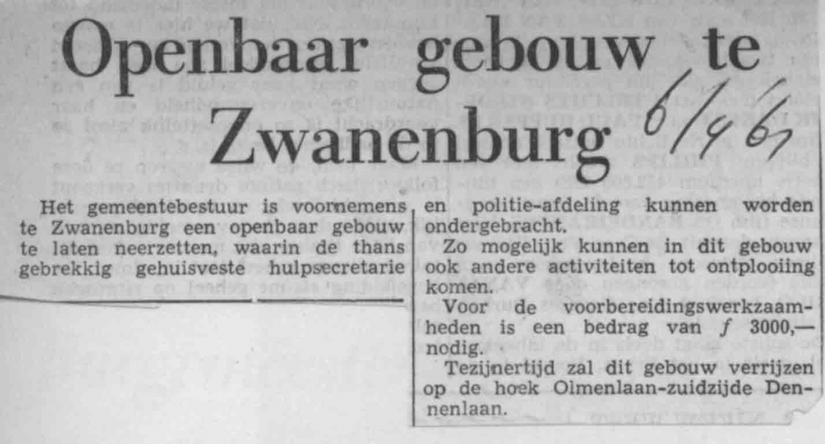 Openbaar gebouw te Zwanenburg hulpsecretarie