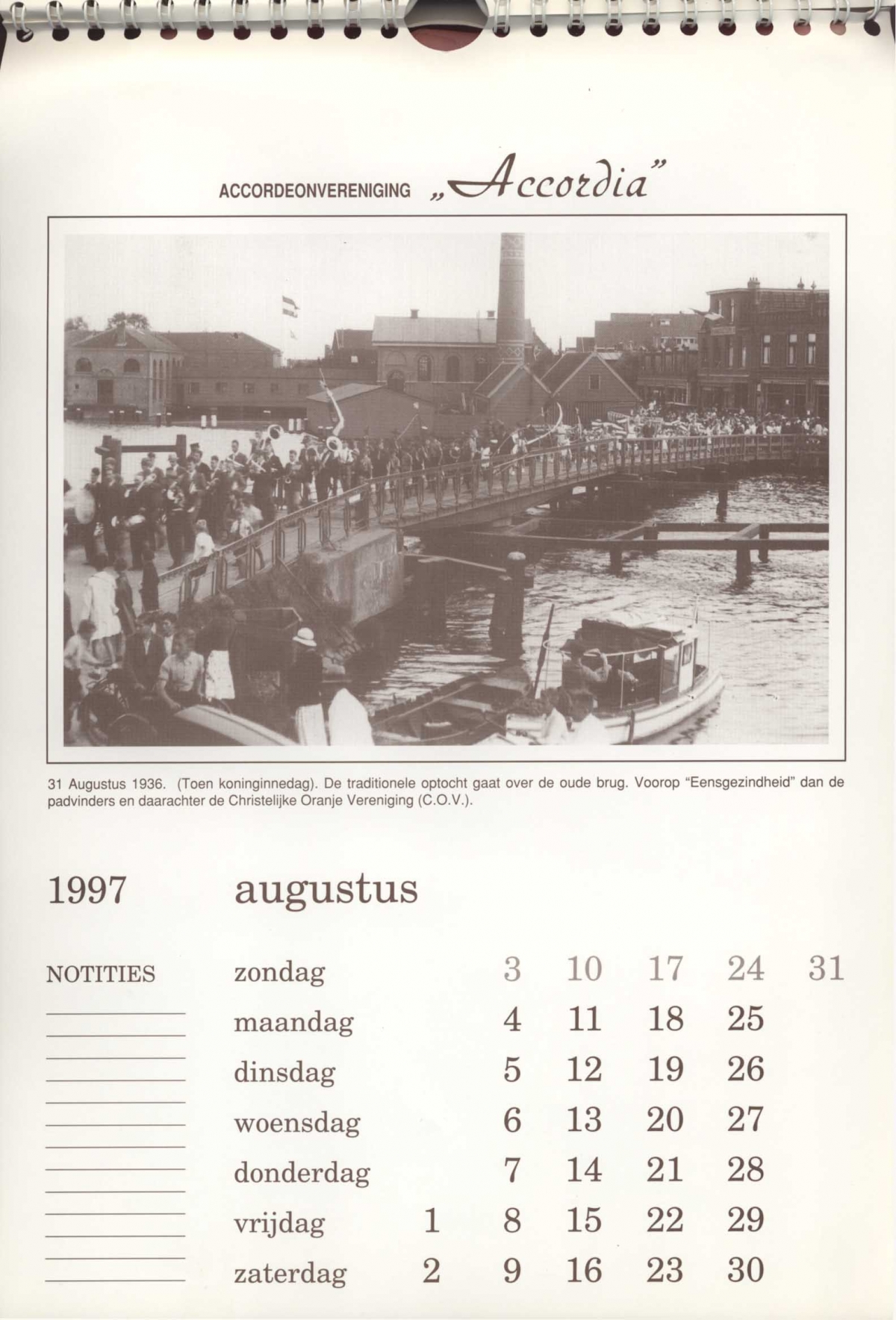 Oude brug, optocht koninginnedag, 31 aug. 1936