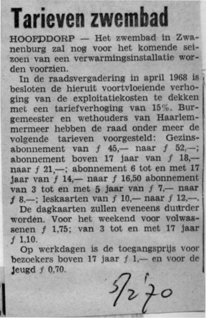 Tarieven zwembad