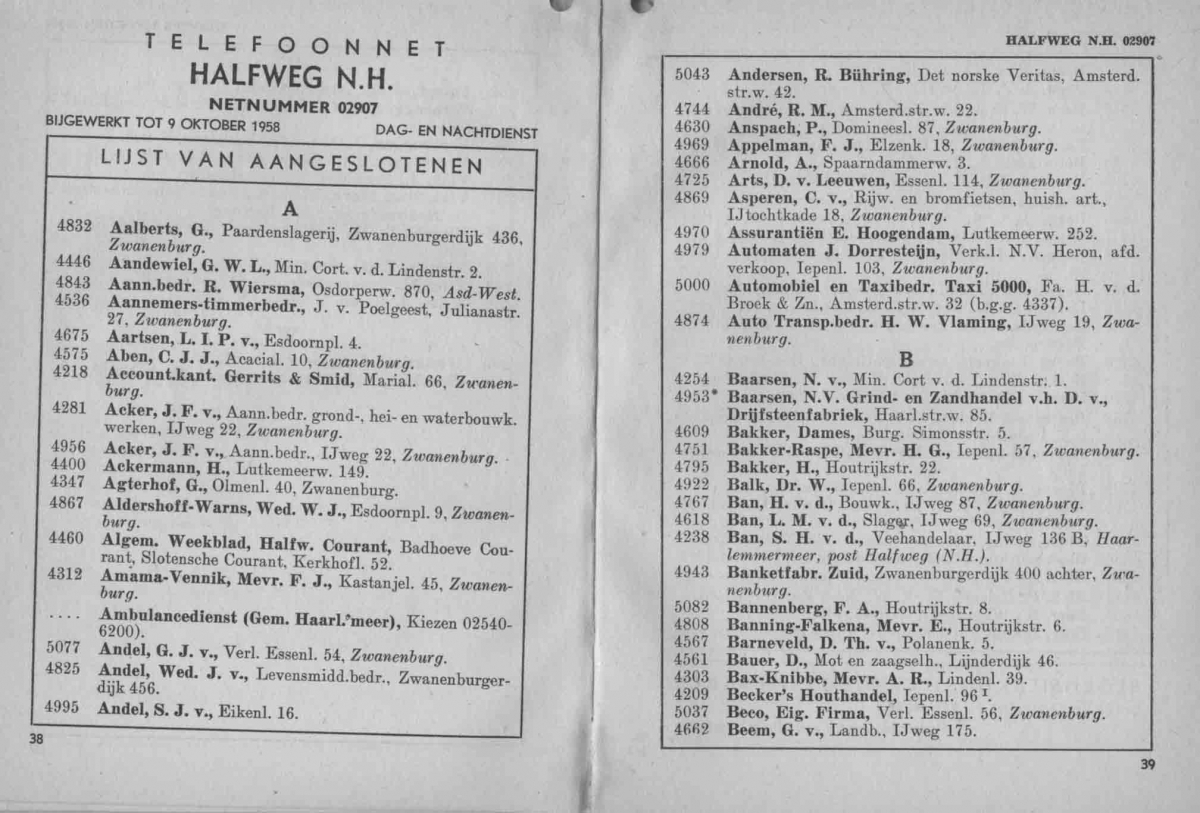 Telefoonboek Halfweg Zwanenburg A-B