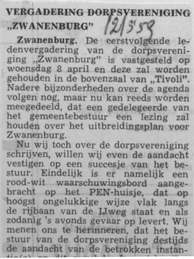 Vergadering Dorpsvereniging Zwanenburg