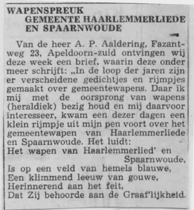 Wapenspreuk Haarlemmerliede en Spaarnwoude