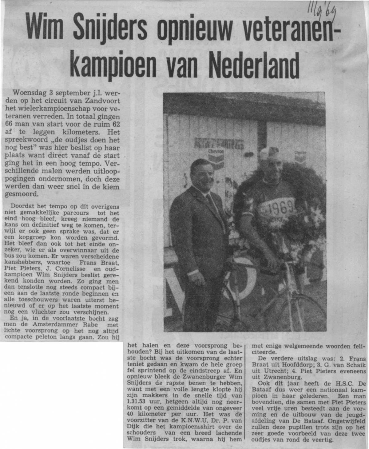 Wim Snijders wielrennen veteranenkampioen