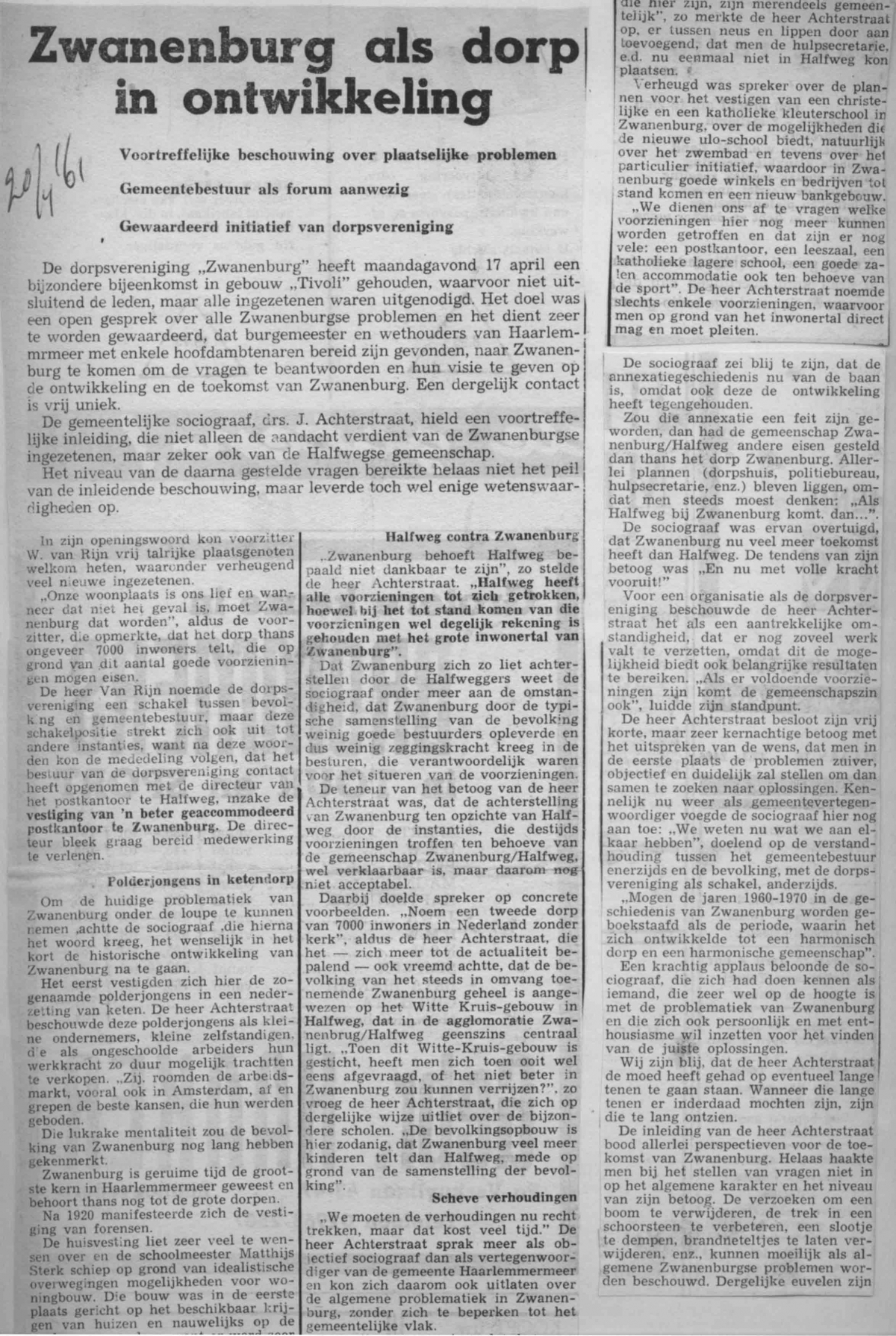 Zwanenburg als dorp in ontwikkeling