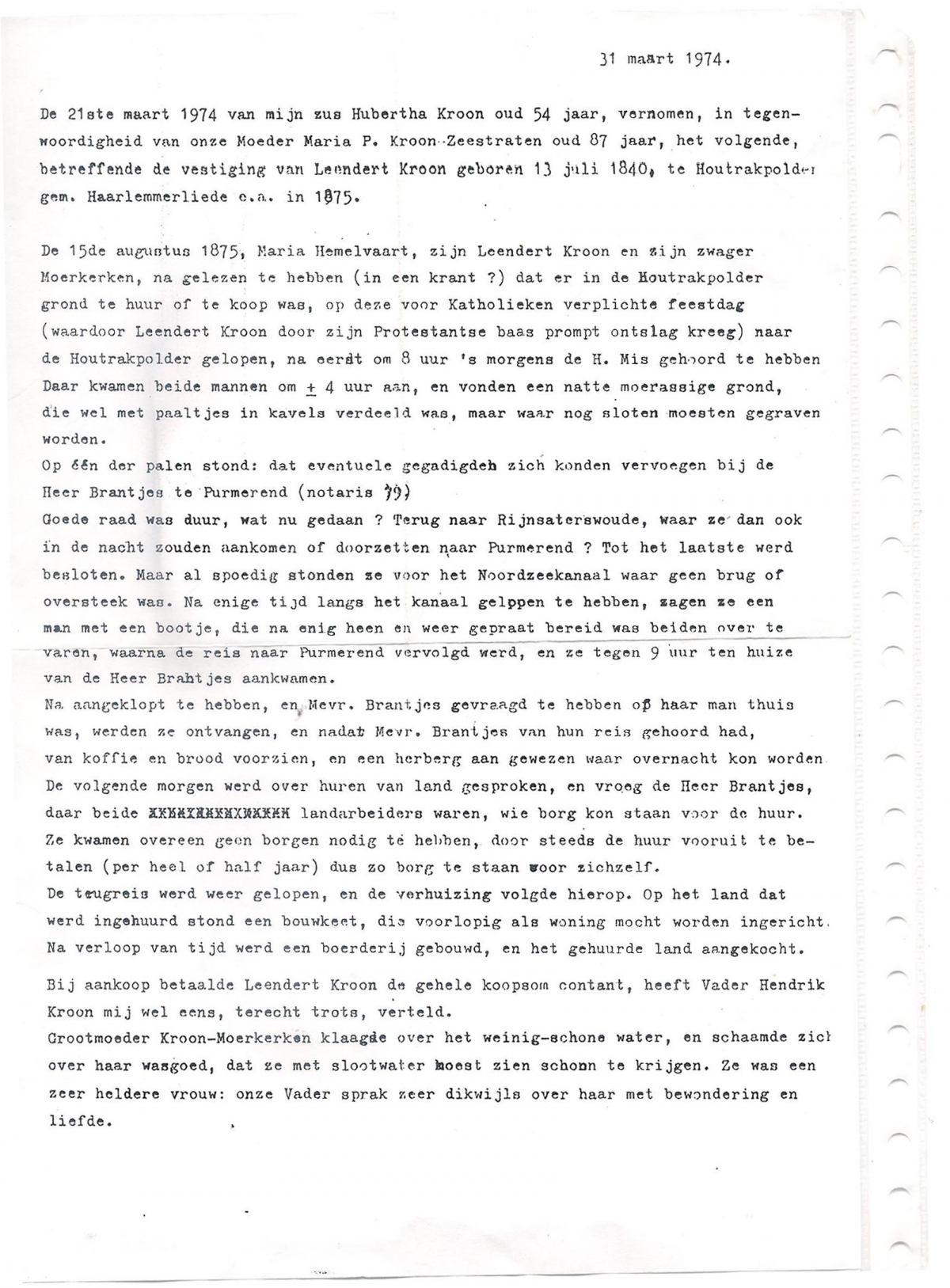 Vestiging van Leendert Kroon in de Houtrakpolder 1875 (artikel)