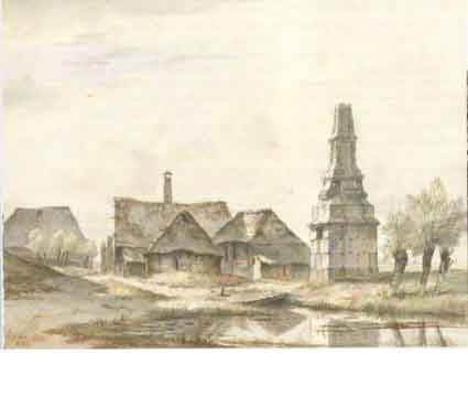 Banpaal zonder top op de Spaarndammerdijk, geschilderd door ten Cate, 1830