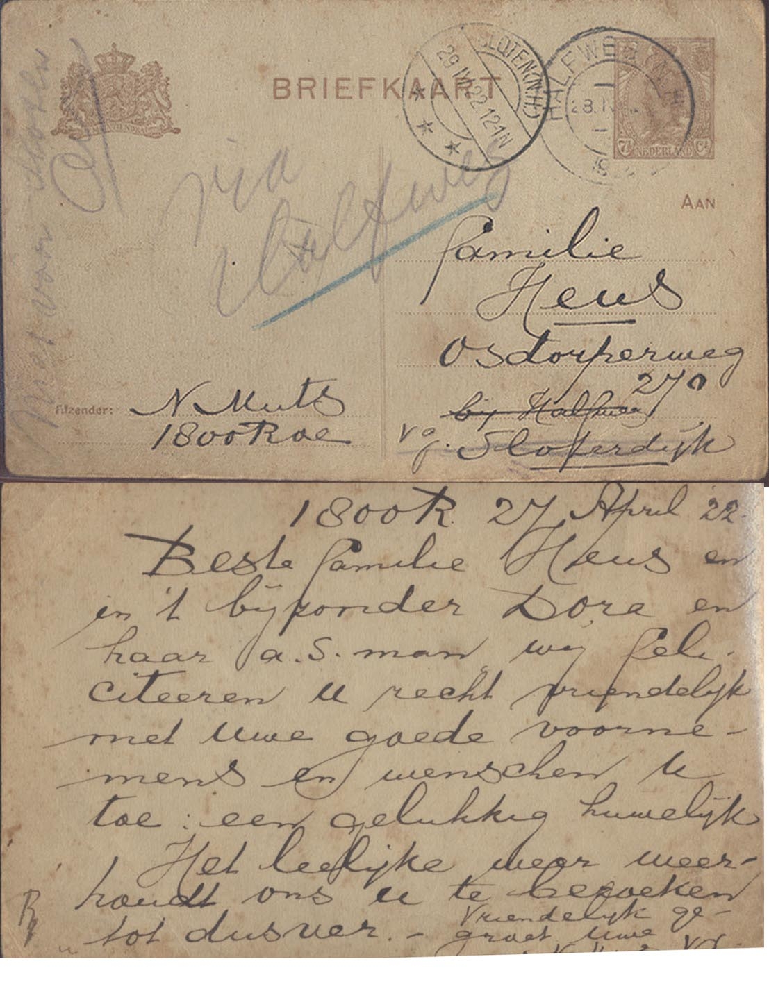 briefkaart via Halfweg