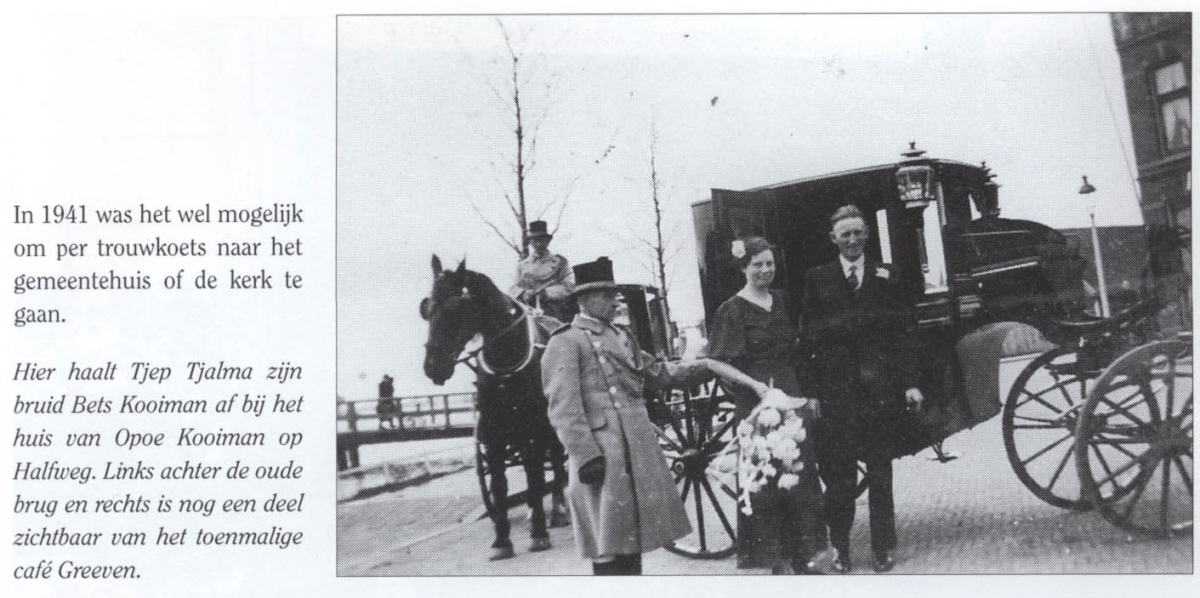 Bruiloft Tjalma en Kooiman, met trouwkoets, 1941