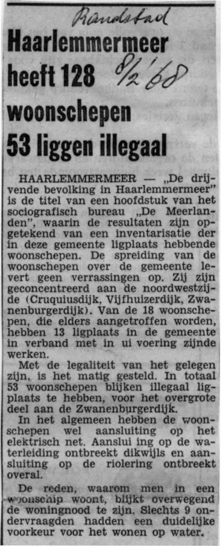 heeft 128 woonschepen 58 illegaal