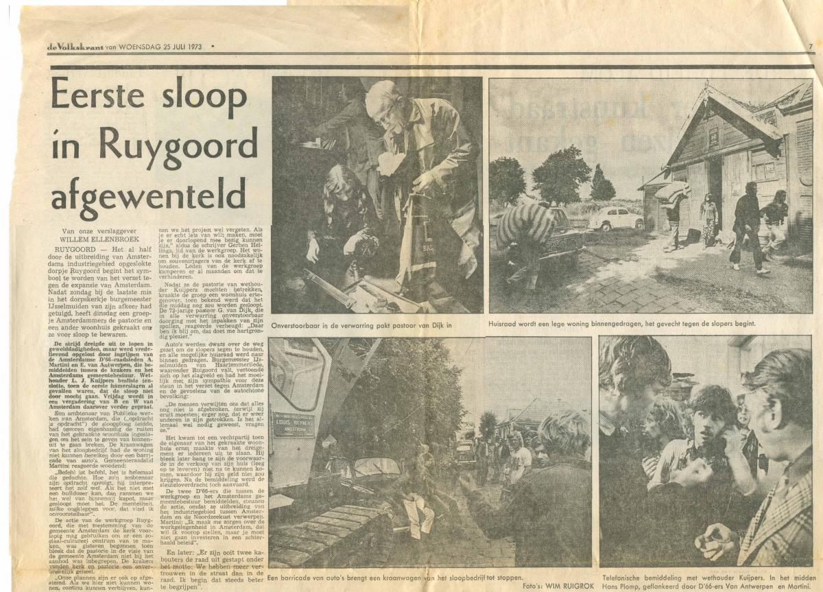 Sloop in Ruigoord afgewenteld , artikel Volkskrant 1973