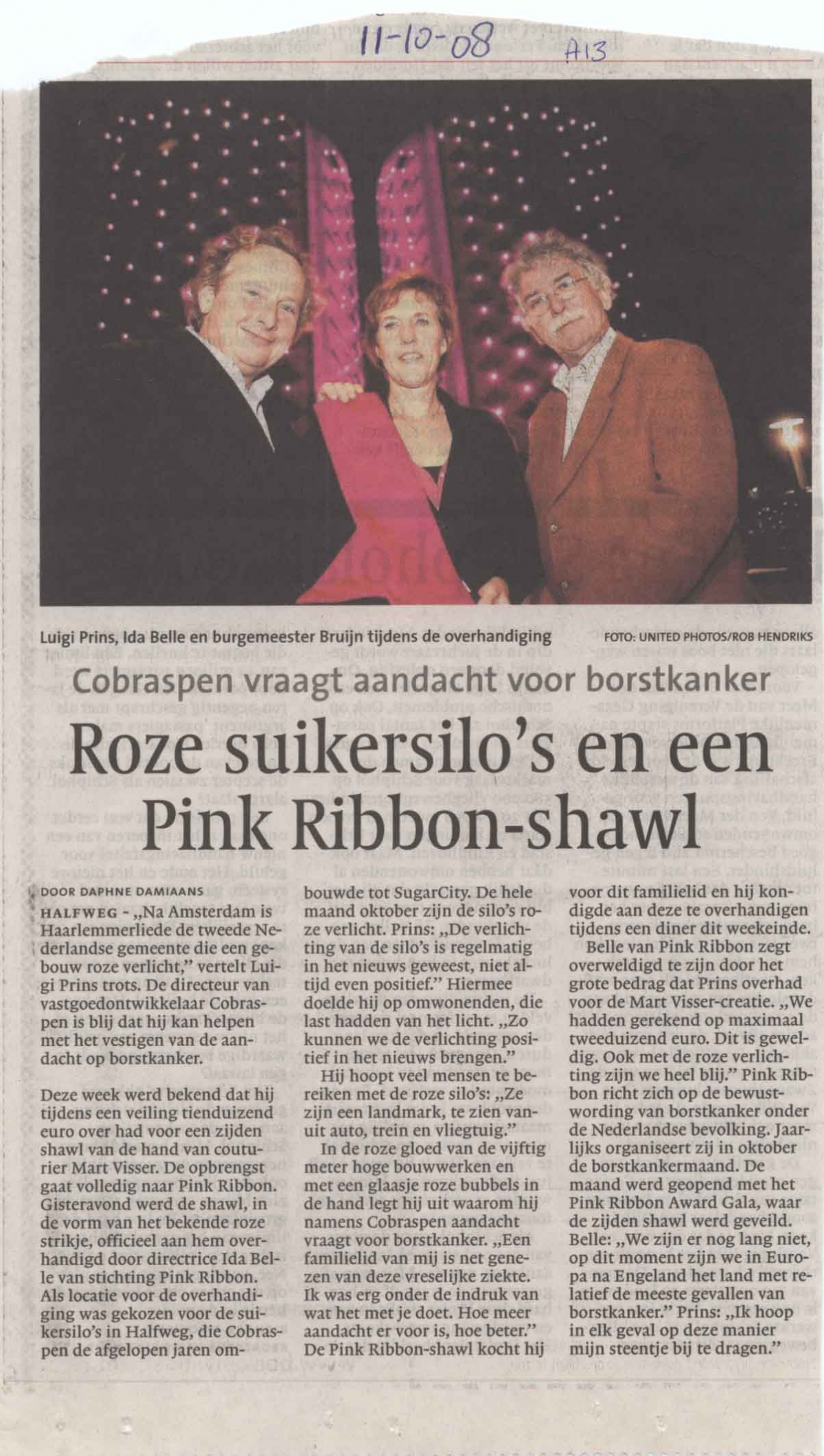 Cobraspen vraagt aandacht voor borstkanker, 2008