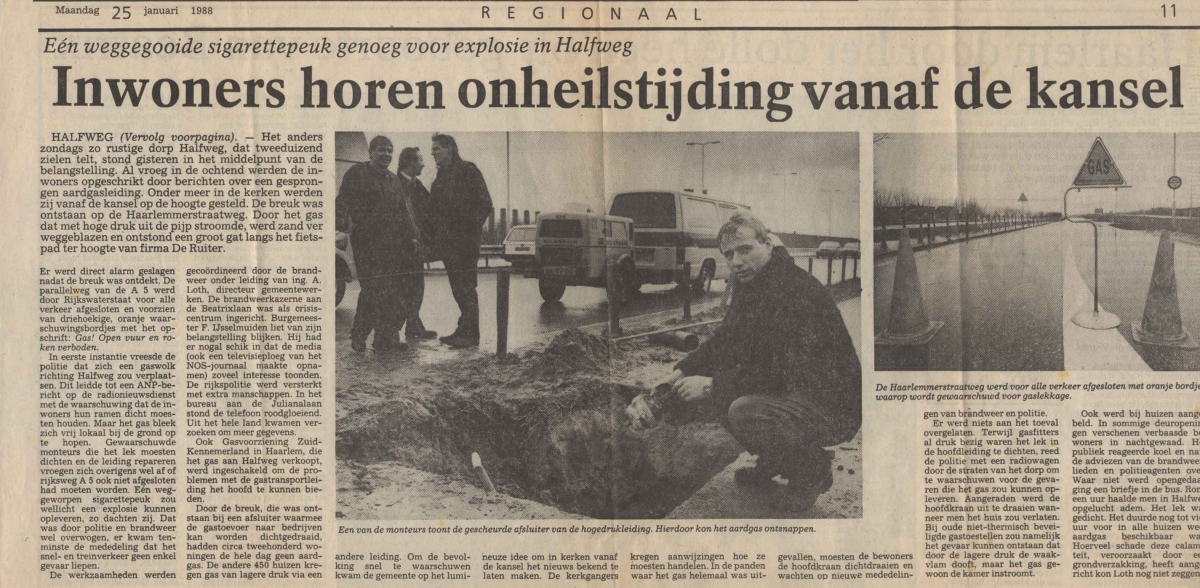 Gesprongen gasleiding Haarlemmerstraatweg, 1988