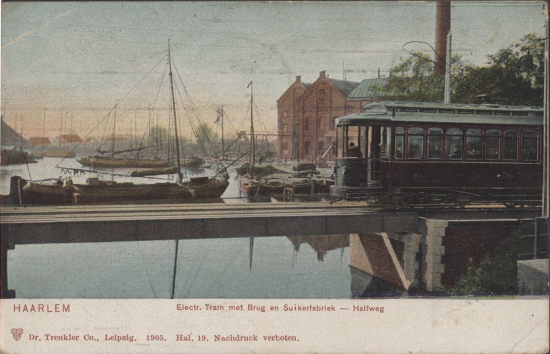 Electr. tram met brug en Suikerfabriek, 1905