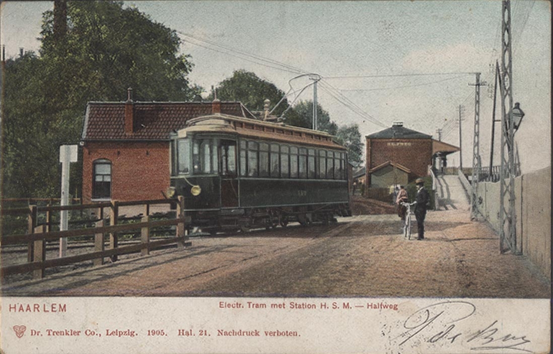 Electr. tram bij station Halfweg, 1905