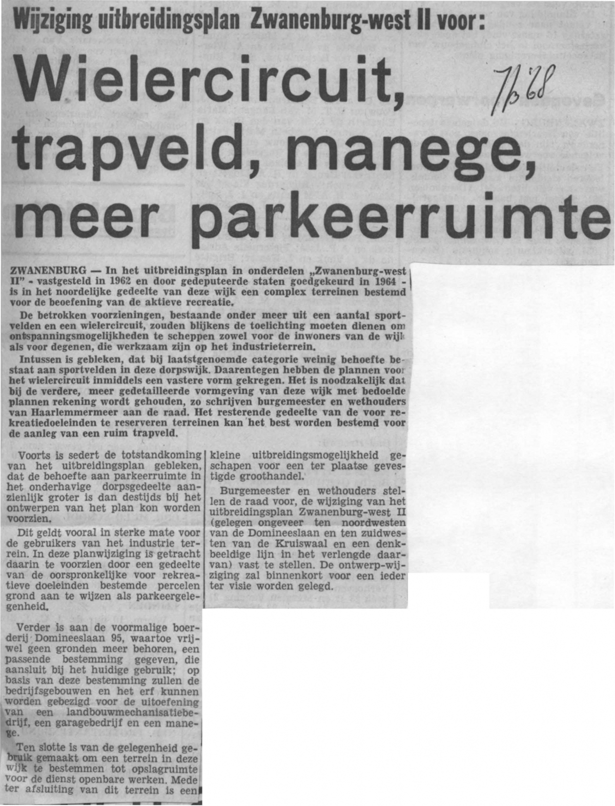 trapveld manege meer parkeerruimte uitbreiding Zwanenburg