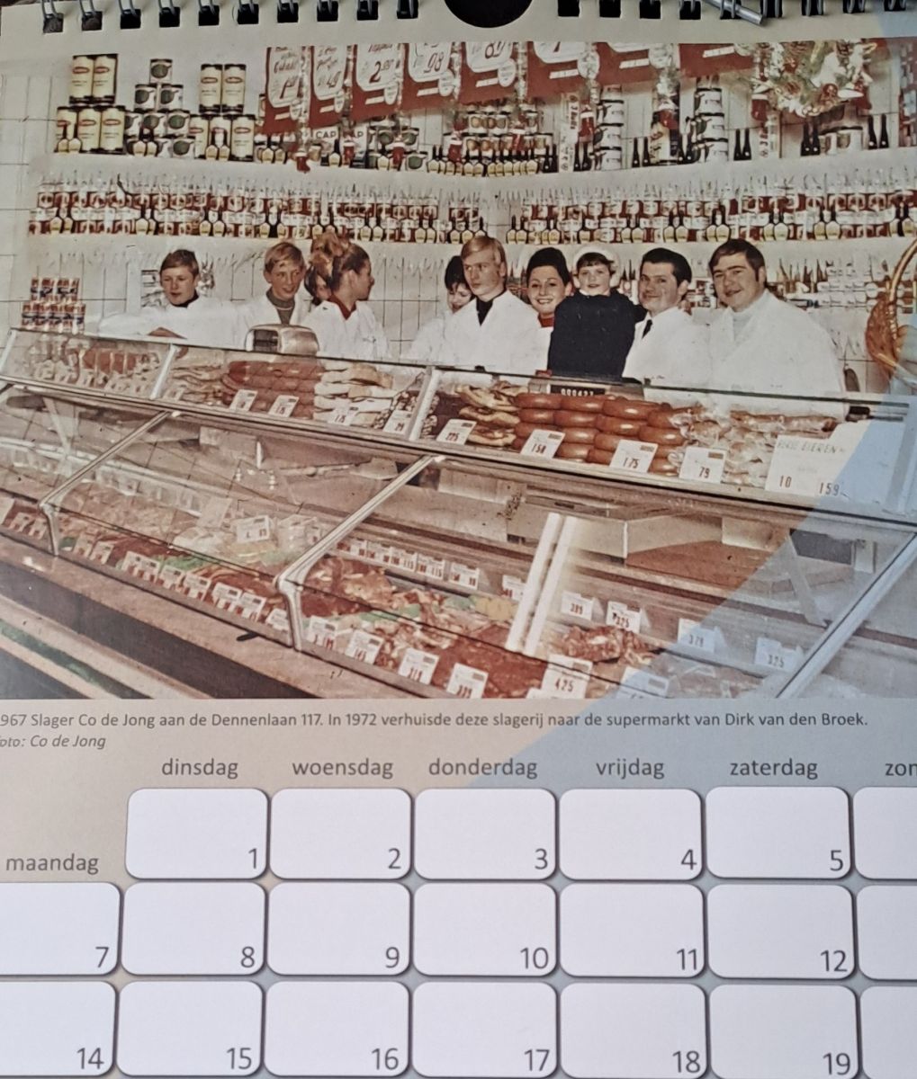 Historisch Halfweg hield op 28 oktober zijn jaarlijkse donateursavond in de protestantse kerk in Halfweg. Zoals gebruikelijk werd daar de kalender voor het komende jaar gepresenteerd. Het eerste exemplaar werd dit jaar uitgereikt aan de voormalige slager Co de Jong. De foto van zijn slagerij aan de Dennenlaan in 1967 siert de kalendermaand december 2026.